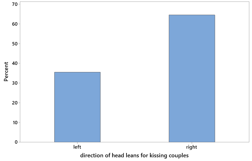 This z-score tells us that the observed sample proportion who selected candy (0.523) is less than one standard deviation away from the hypothesized value of 0.5. The two-sided p-value from the normal distribution to be ≈ 2×0.2198 = 0.4396. Again, of course, the p-value is not small and so we conclude that the sample data do not provide sufficient evidence to reject the null hypothesis of equal likeliness.