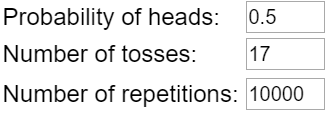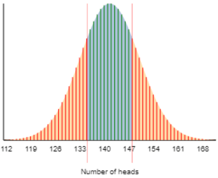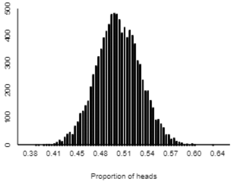 Here is a graph of the distribution of sample proportions resulting from 10,000 repetitions of 283 coin flips (using the One Proportion applet here):