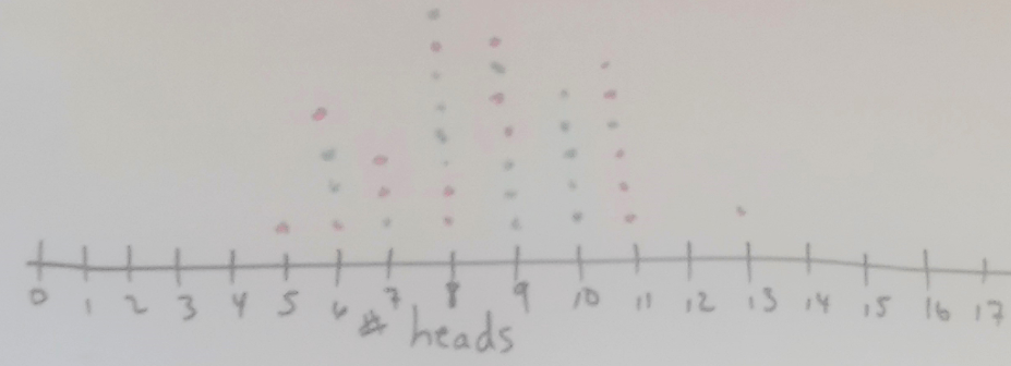 Whew, that was a lot of background questions! Notice that I have not yet told you how the sample data turned out. I think it’s worth showing students that the issues above can and should be considered before looking at the data. So, how did the data turn out? The researchers found that 148 children selected the candy and 135 selected the toy. The value of the sample proportion who selected the candy is therefore 148/283 ≈ 0.523.
