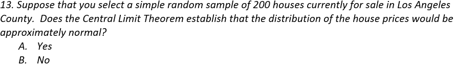 You could ask a version of this question that does not refer to the Central Limit Theorem by asking: Does the sample size of 200 houses establish that …