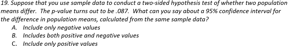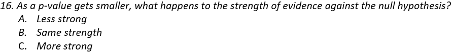 I like to think that this question assesses some basic level of understanding, but frankly I’m not sure. Do students ever say that a standard deviation and a p-value can sometimes be negative? Not often, but yes. Do I question my career choice when I read those responses? Not often, but yes.