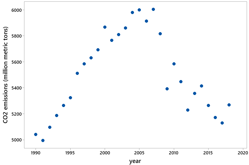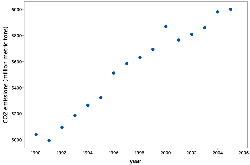 3. Consider the following graph of energy-related carbon dioxide (CO2) emissions (in million metric tons) in the United States from 1990 – 2005:
