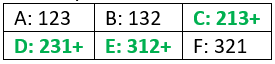 First notice that orderings A (123) and B (132) do not lead to success, because the best candidate is first in line. But ordering C (213) is a winner: The second candidate is better than the first, so you hire her, and she is in fact the best. Ordering D (231) takes advantage of the key insight: The second candidate is worse than the first, so you keep going and hire the third candidate, who is indeed the best. Ordering E (312) is also a winner. But with ordering F (321), you hire the second person, because she is better than the first person, not knowing that the best candidate is still waiting in the wings. The orderings for which you succeed in choosing the best are shown with + in bold green here: