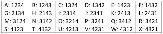 Now let’s consider the case with 4 candidates. How many different orderings are possible? The answer is 4! = 24, as shown here: