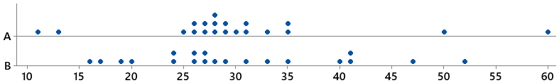 In the second dataset, fruit flies were randomly divided into two groups of 1000 each; one group was fed organic food and the other group was fed conventional (non-organic) food*. The longevity of each fly by group is visualized below: