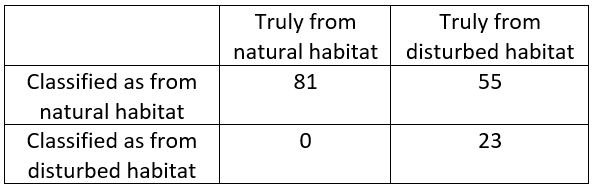 Most students assess the method overall by calculating the percentage of correct (or incorrect) predictions, obtaining an accuracy of 67/70 ≈ 96%.