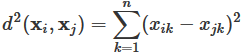 This is just the formula for the distance between two points that students learn in their algebra class (and is essentially the Pythagorean theorem), but the formula is intimidating to some students, so I try to explain what is going on using pictures. If we think of xi and xj as vectors, then d(xi, xj) measures the distance between the tips of the arrows.