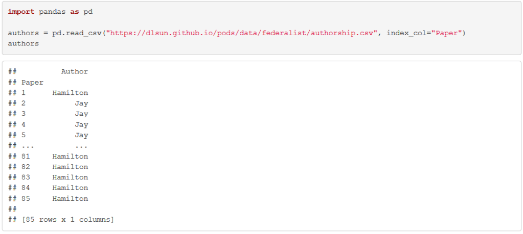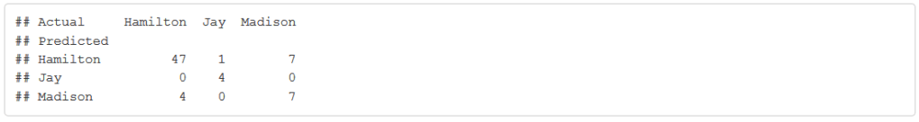 * When I first started using this example in my class, few students were familiar with the Federalist Papers. However, the situation has greatly improved with the immense popularity of the musical Hamilton.