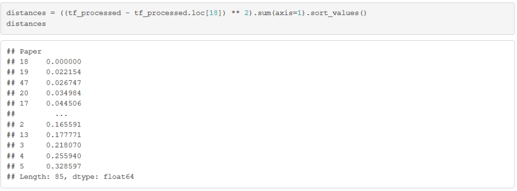 Now, let’s look at one of the disputed papers: Federalist Paper #18. We calculate the Euclidean distance between this document and every other document: