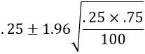 This calculation becomes .25 ± .085, which is the interval (.165 → .335).